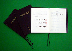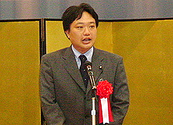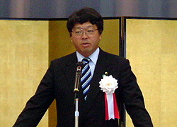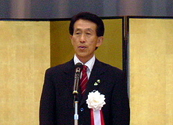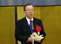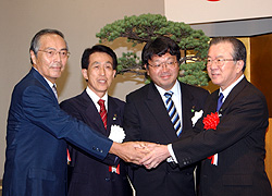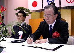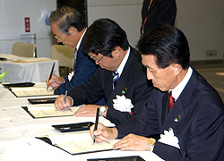 特別立会人として愛知県知事の立会いのもと、一宮市長、尾西市長、木曽川町長が合併協定書に署名を行いました。